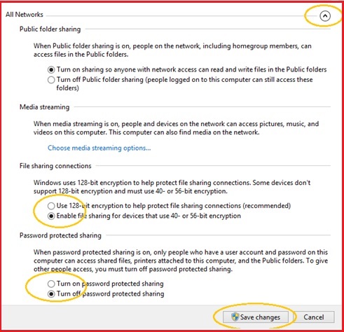 Bật chức năng chia sẻ trên máy tính: Mở “Control panel” chọn “ Network and sharing Center” chọn “ Change advanced sharing settings”